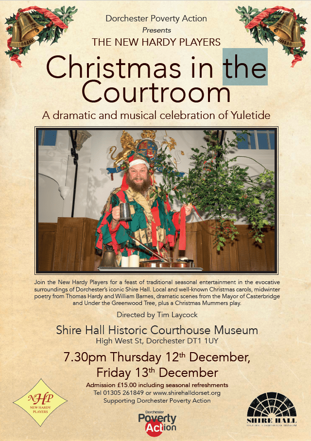 These are times of change…The New Hardy Players bring Under The Greenwood Tree to the stage at the Corn Exchange, where Thomas Hardy saw the original Hardy Players perform the first dramatization of this most light-hearted and humorous of the Wessex novels in 1910. The 2016 adaptation had been written by renowned actor, playwright and director Jack Shepherd (Inspector Wycliffe) and cleverly tackles the social changes which rock the small community of Mellstock. “There can be few better ways of welcoming the festive season than watching the New Hardy Players perform Thomas Hardy’s warm hearted story of Dorset country people of yesteryear which feature their traditional Christmas celebrations” Marian Cox at the dorset Echo.