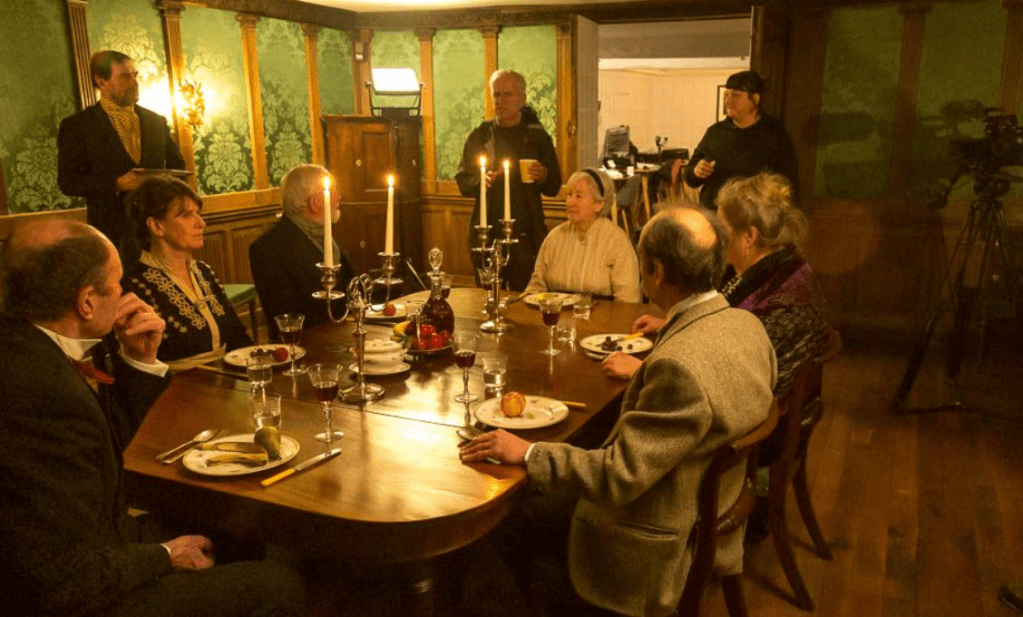 Filming at Athelhampton House earlier in the year A dinner party with Thomas and Florence Hardy in 1914 hosted by Alfred de la Carte Fontaine. Photo: Howard J Payton Share this: Click to share on X (Opens in new window) X Click to share on Facebook (Opens in new window) Facebook Like Loading... Related Comments are closed.